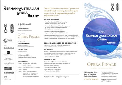 In addition to the German-Australian Opera Grant (GAOG), singers have the opportunity to be considered for: