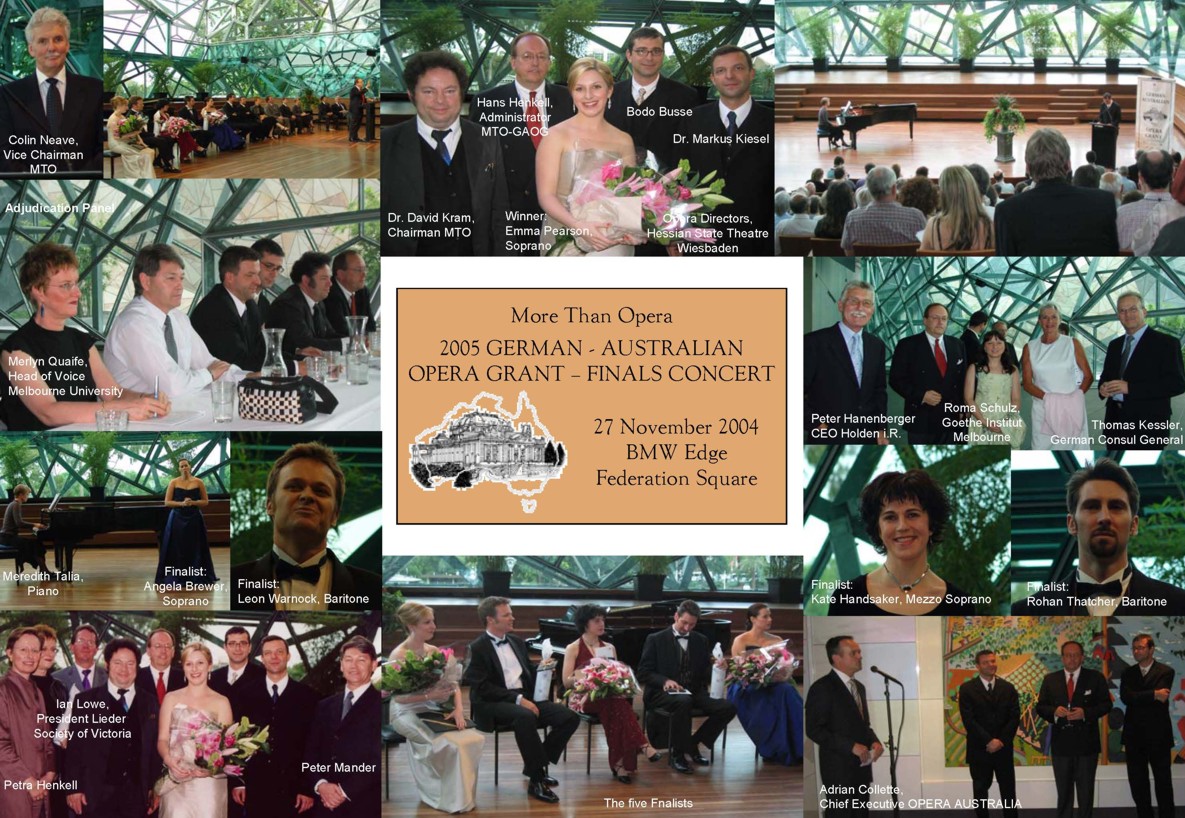 1st prize: Emma Pearson won a 1 year employment contract at the Wiesbaden Opera House in Germany, plus Austrian Airline ticket, 2 month German language course at the Goethe Institutin Germany and 1 month work experience at the Opera House to gain an insight into the procedures prior to the official start.