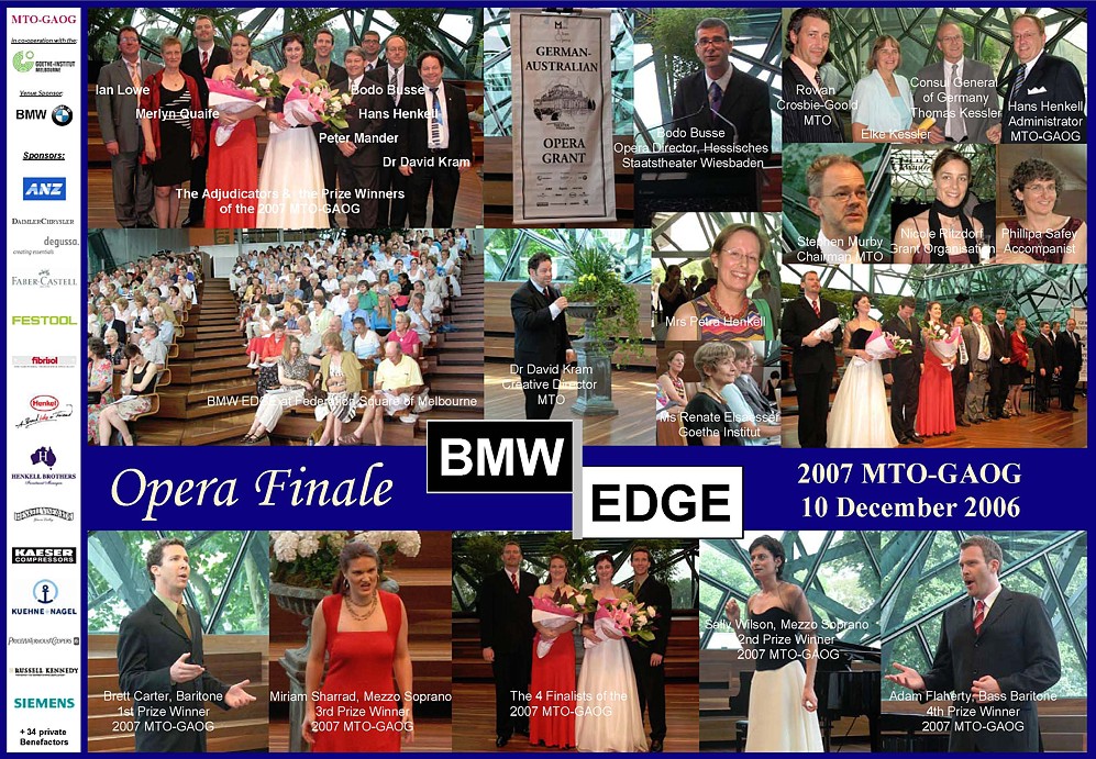 More Than Opera Ltd represented by Mr. Stephen Murby and Dr. David Kram (Victorian College of the Arts) and the German-Australian Opera Grant adjudication panel (Ian Lowe - Melba Conservatorium, Peter Mander - Monash University, Merlyn Quaife - Melbourne University, Hans Henkell - Administrator) in cooperation with the Hessisches Staatstheater Wiesbaden represented by opera director Bodo Busse, offer the German-Australian Opera Grant.